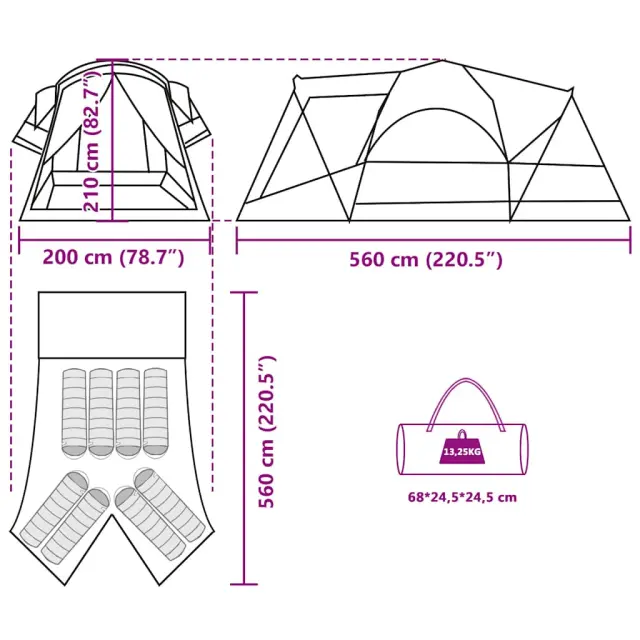 vidaXL Šotor za kampiranje za 8 oseb siv in oranžen vodoodporen