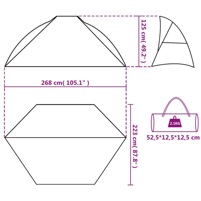 vidaXL Šotor za na plažo morsko zelen 268x223x125 cm 185T poliester