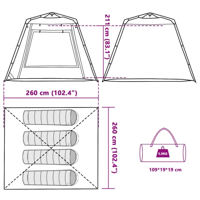 vidaXL Šotor za ribolov za 4 osebe kamuflažen za hitro postavitev