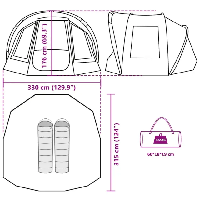 vidaXL Šotor za ribolov za 2 osebe olivno zelen vodoodporen