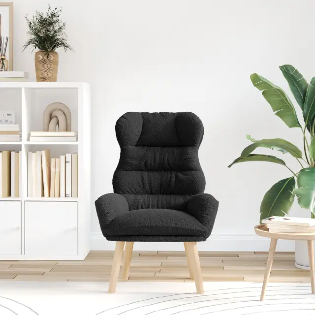 Ta moderni naslanjač združuje stil in udobje, kar ga dela za izvrstno izbiro v vsakem dnevnem prostoru ali spalnici. Oblazinjeno je v svilnato črno poliester tkanino in ne le izgleda klasično, ampak nudi udoben prostor za sprostitev ali branje ter ustvarja prijeten ambient v tvojem domu.