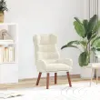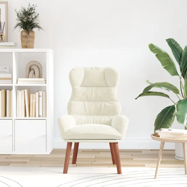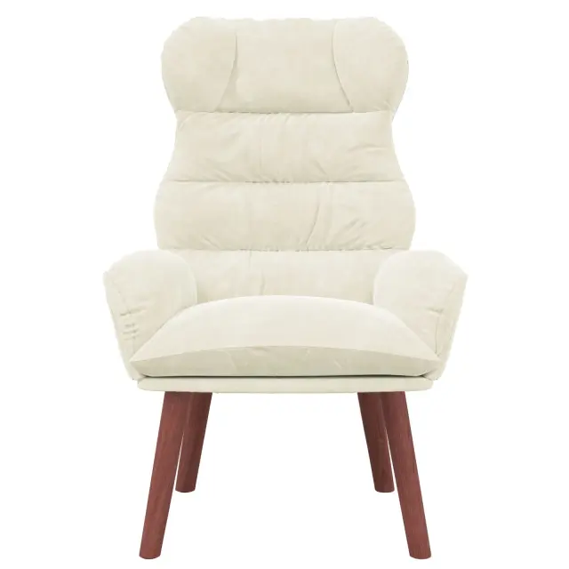 Ta kremni oblazinjeni naslanjač je popolna kombinacija udobja in modernega dizajna, zato je super izbira za dnevne sobe ali spalnice. Ima lepe naslone za roke in dobro podporo za hrbet, kar je idealno za prijetne popoldneve s knjigo ali ob gledanju najljubših serij.
