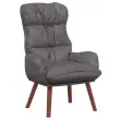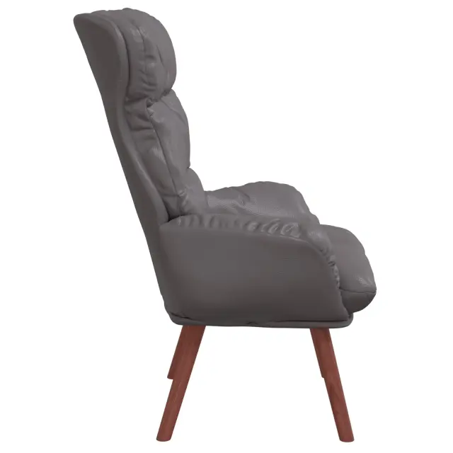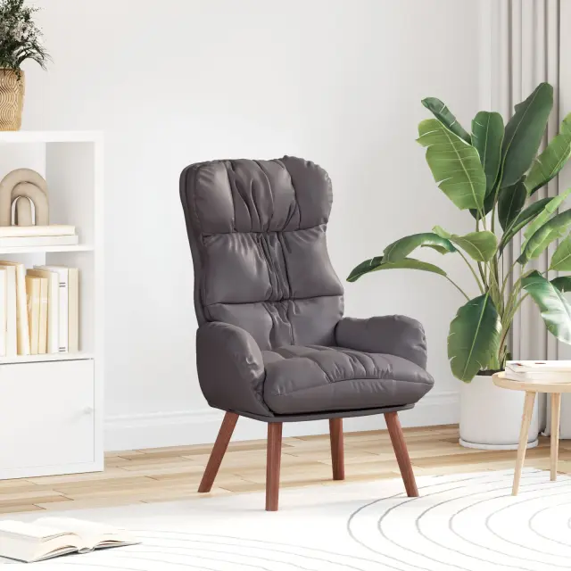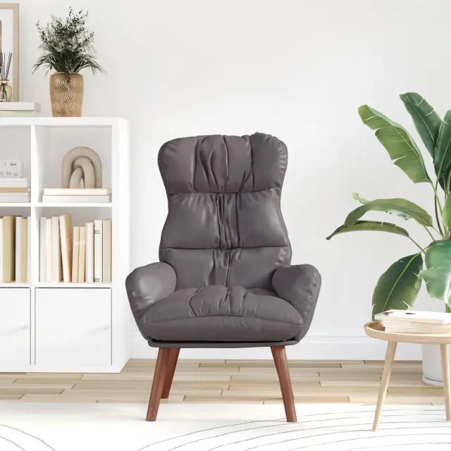 Ta naslanjač je prava izbira, ki združuje elegantno sivo usnje z močno lesenim okvirjem za sodoben videz. Odličen je za sprostitev ali branje, nudi udobno sedenje za vsakogar, ki ceni stil in udobje.