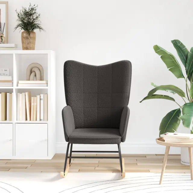 Ta gugalni stol združuje moderni videz in odlično udobje, idealno za tvoj dnevni prostor. Odlična izbira za branje ali sproščanje, njegov temno siv material se ujema z vsakim dekorjem, medtem ko daje prijeten občutek.