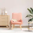Ta sprostitveni stol je odlična izbira za udobje, narejen za vsakogar, ki išče stilsko sproščanje. S svojim elegantnim dizajnom in mehkim dotikom v čudoviti mehki roza barvi, je idealno mesto za spočiti po napornem dnevu, kar ga naredi nujno potrebnega za vašo dnevno sobo ali spalnico.