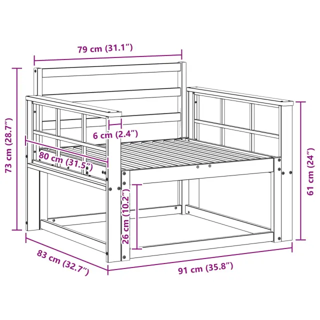 • 1 x srednja sedežna garnitura: 79 x 83 x 73 cm (D x Š x V)