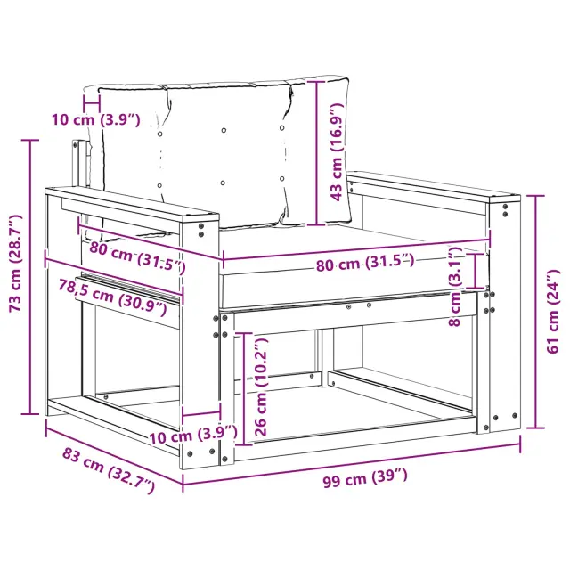 • 1 x sedežna blazina: 80 x 80 x 8 cm (D x Š x V)