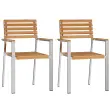 vidaXL Stacking Garden Chairs 2 kosi Trden tikov les in nerjaveče jeklo