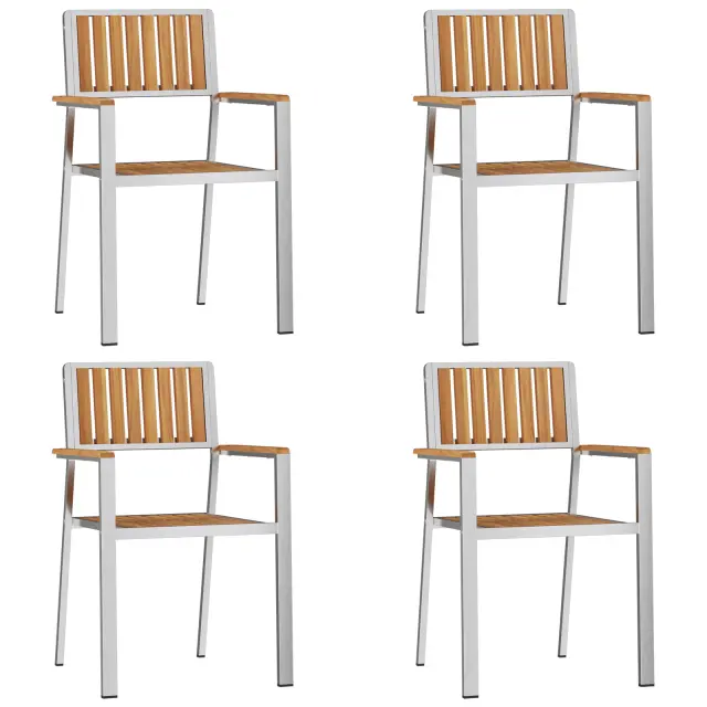 vidaXL Stacking Vrtnarske Stole 4 kosa Trden Tikov les in Nerjavna Jekl