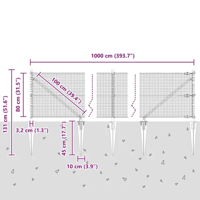 • Splošne dimenzije: 1000 x 3,2 x 80 cm (D x Š x V)