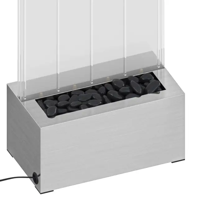 S tem fantastičnim stebrom z mehurčki in barvitimi LED lučkami dodajte svojemu bivalnemu prostoru preprosto eleganco! Trpežen material: Ta fontana je izdelana iz nerjavečega jekla tipa 304, ki je odporno na praske in korozijo. Zato je zelo trpežna. Akrilna konstrukcija je zasnovana za enostavno uporabo brez skrbi, da bi se na površini pojavili madeži rje. Pisane LED luči z daljinskim upravljalnikom: RGB LED luči spreminjajo barve. S priloženim daljinskim upravljalnikom lahko priročno izbirate različne hitrosti LED osvetlitve, barve luči in stopnjo svetlosti.Elegantna zasnova: Pladenj, nameščen na vrhu podstavka, je okrašen s priloženimi tlakovci, kar poveča naravni čar stebra z mehurčki.Barva: Srebrna in prozornaMaterial: Brušeno nerjaveče jeklo (SS 304), akrilDimenzije (vključno s podstavkom): 40 x 22 x 110 cm (D x Š x V)Dimenzije (samo slap): 40 x 4 x 90 cm (D x Š x V)Napetost in frekvenca: 220-240 V~; 50/60 HzMoč: 8,4 WRGB LED diode na zgornji in spodnji straniKoličina šob: 4Šoba za nadzor pretoka mehurčkov je nastavljiva od manjše do večje količine mehurčkovPaket vsebuje:1 x Steber z mehurčki1 x Črpalka1 x Daljinski upravljalnik1 x Vtič 151400