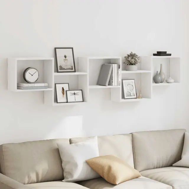 vidaXL Stenska kockasta polica 5 predelki bel inženirski les