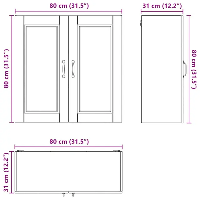 vidaXL Stenska kuhinjska omarica s polico Siva Sonoma 80 x 31 x 80 cm