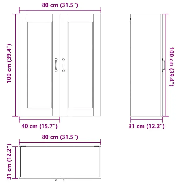 • Splošne dimenzije: 80 x 31 x 100 cm (D x Š x V)