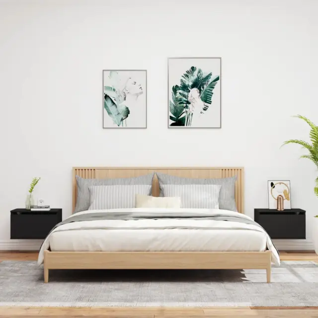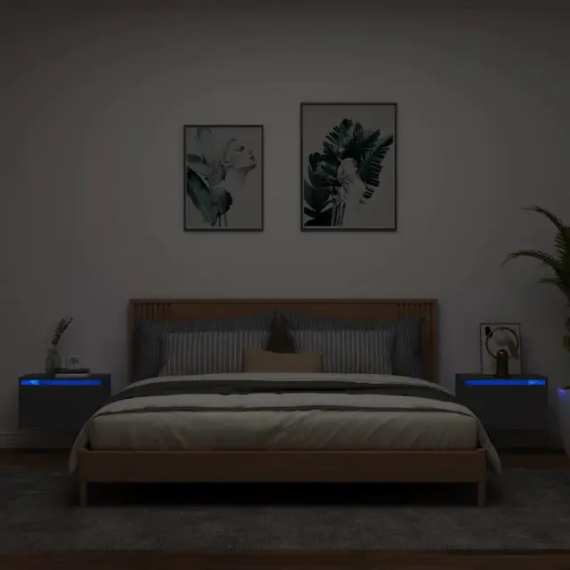 vidaXL Stenska nočna omarica z LED lučkami 2 kosa črna