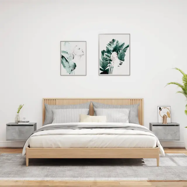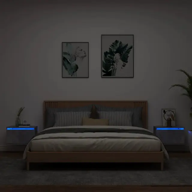 vidaXL Stenska nočna omarica z LED lučkami 2 kosa betonsko siva