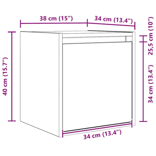 vidaXL Stenska nočna omarica črna 38x34x40 cm