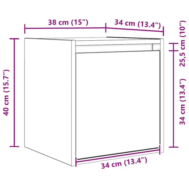vidaXL Stenska nočna omarica artisan hrast 38x34x40 cm