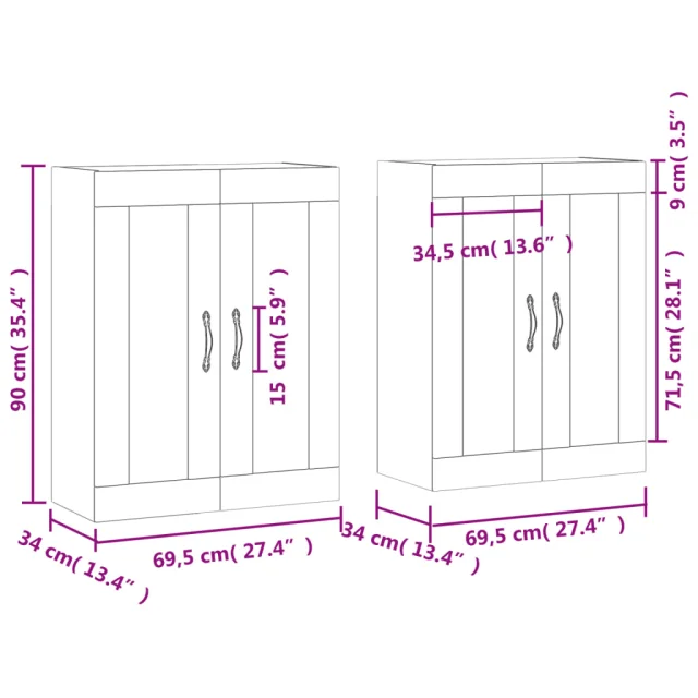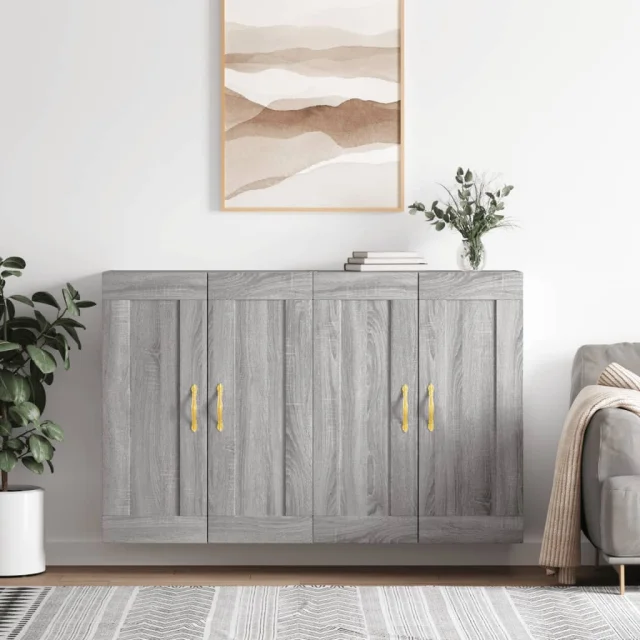 vidaXL Stenska omarica 2 kosa siva sonoma inženirski les