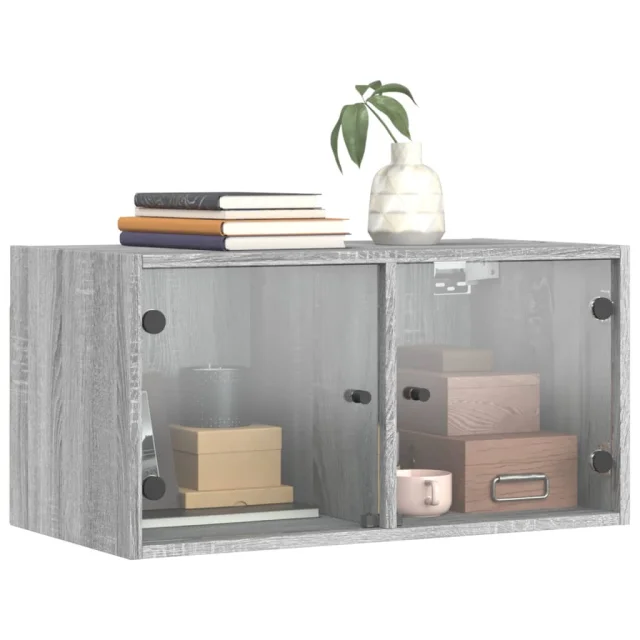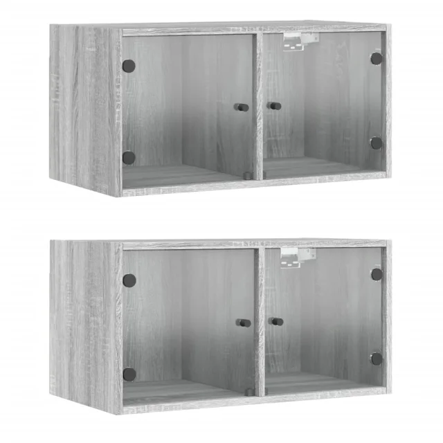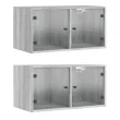 vidaXL Stenska omarica s steklenimi vrati 2 kosa siva 68,5x37x35 cm