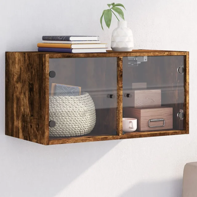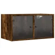 vidaXL Stenska omarica s steklenimi vrati dimljen hrast 68,5x37x35 cm