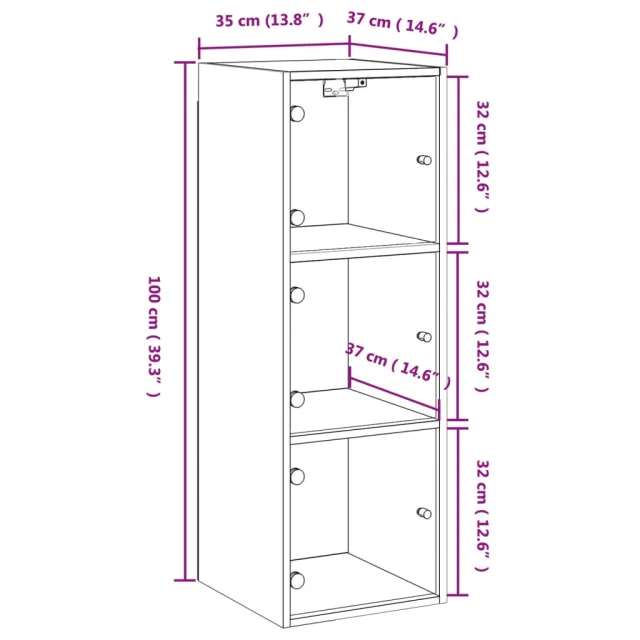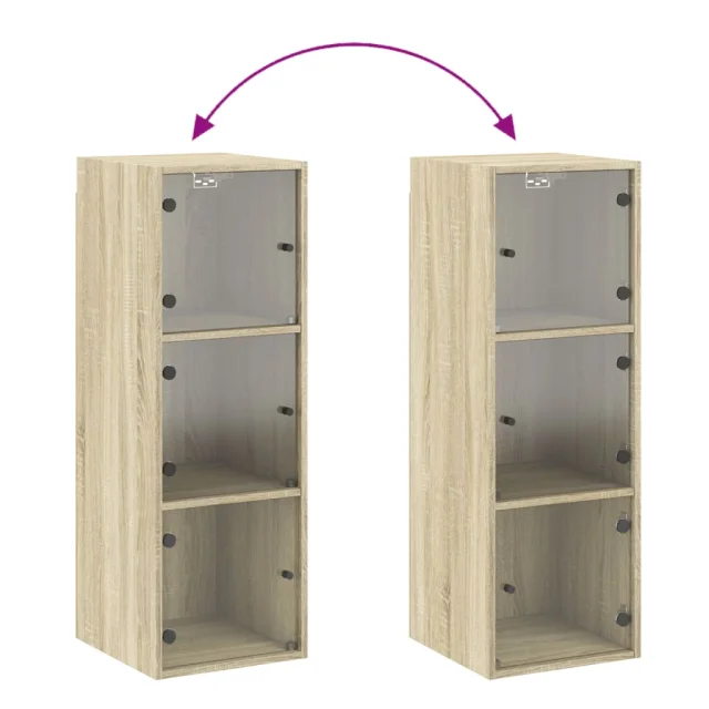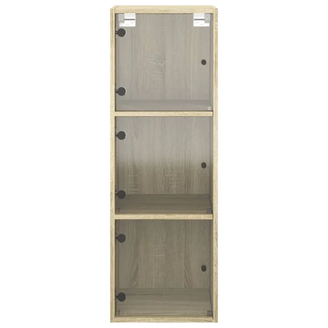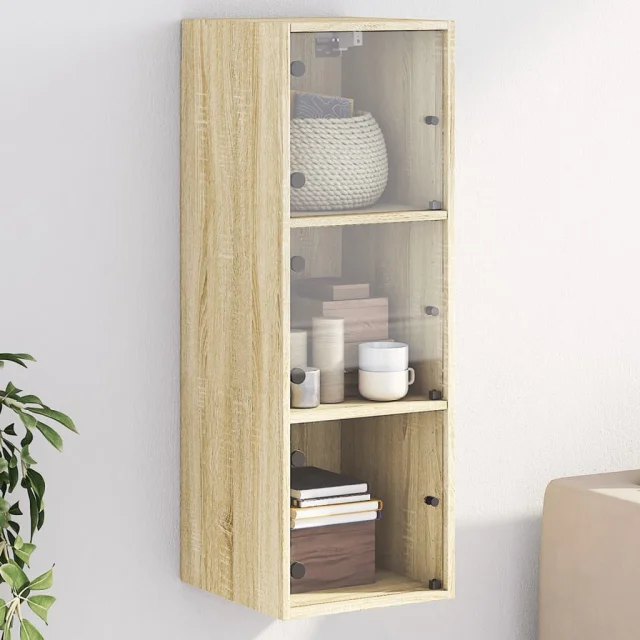 vidaXL Stenska omarica s steklenimi vrati sonoma hrast 35x37x100 cm