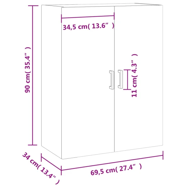 vidaXL Stenska omarica siva sonoma 69,5x34x90 cm