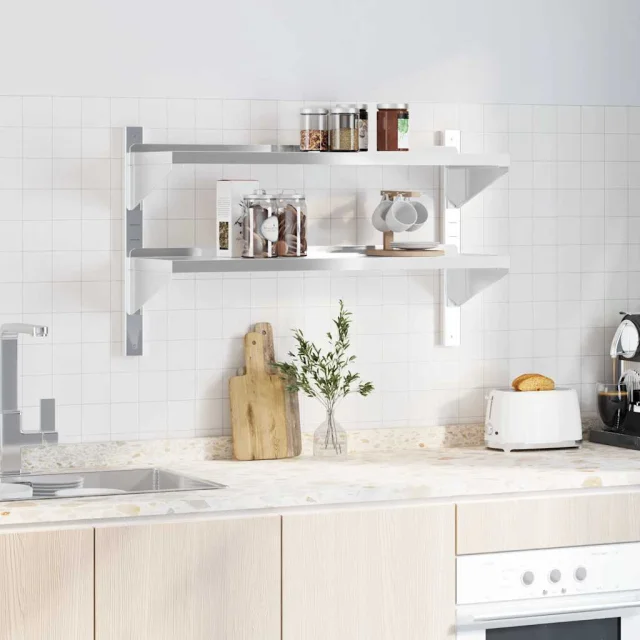 vidaXL Stenska polica 2-nadstropna 100x30x60 cm srebrna nerj. jeklo