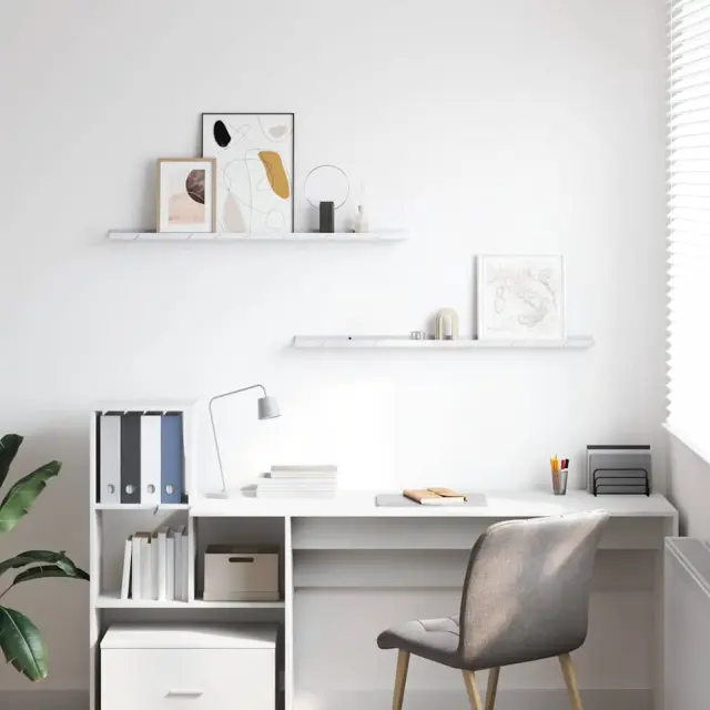 vidaXL Stenska polica 2 pcs Beli marmor 100 x 9 x 3 cm Konstruiran les