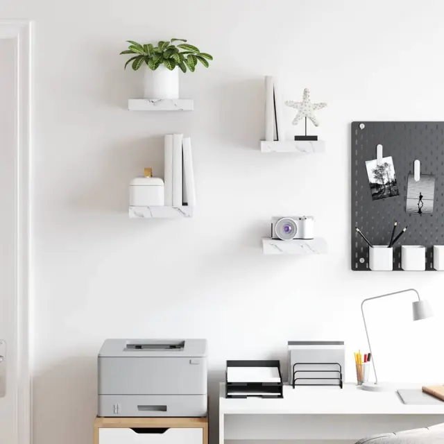 vidaXL Stenska polica 4 pcs Beli marmor 23 x 23,5 x 4 cm