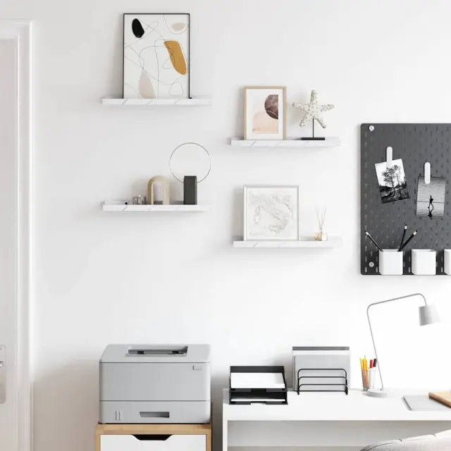 vidaXL Stenska polica 4 pcs Beli marmor 40 x 9 x 3 cm Konstruiran les