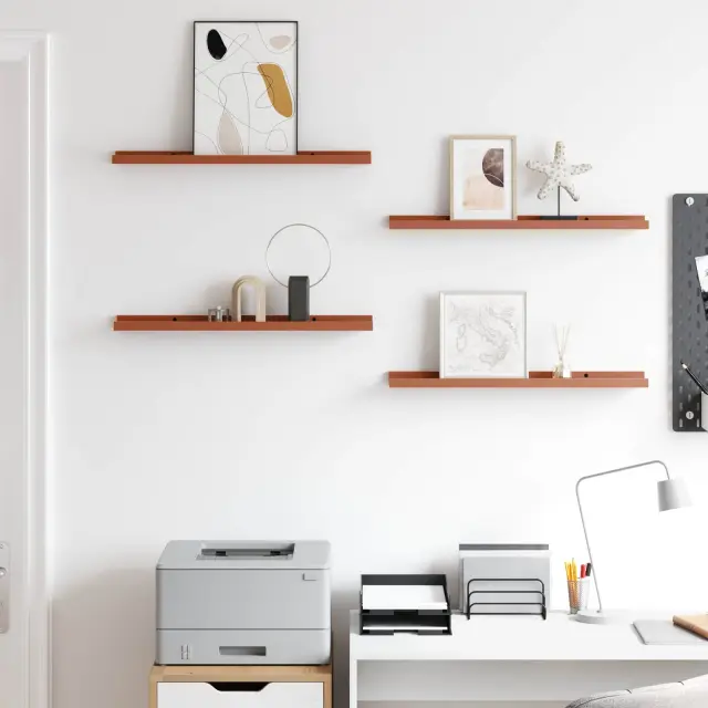 • Gladek inženirski les: Ta polica je narejena iz inženirskega lesa, kar ji daje gladek zaključek, ki dviguje njen moden videz in zagotavlja trdnost in zanesljivost. Odpornost na vsakodnevno obrabo pomeni dolgotrajno izbiro za vašo dekoracijo in rešitve shranjevanja.
