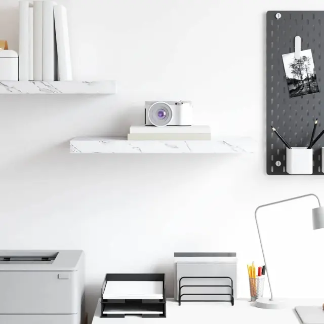 vidaXL Stenska polica Beli marmor 60 x 23 x 4 cm Konstruiran les