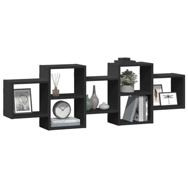 vidaXL Stenska polica črna 129x18x42 cm inženirski les