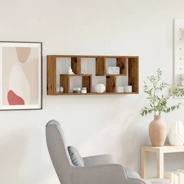 vidaXL Stenska polica iz starega lesa 36x16x90 cm, inženirski les