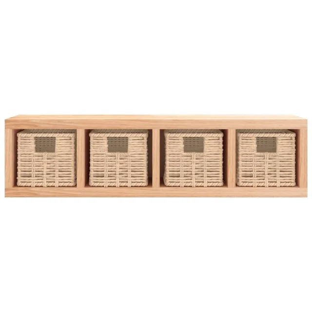 vidaXL Stenska polica s košarami 62x18x16 cm trdna orehovina
