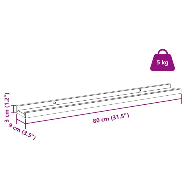 • Splošne dimenzije: 80 x 9 x 3 cm (D x Š x V)