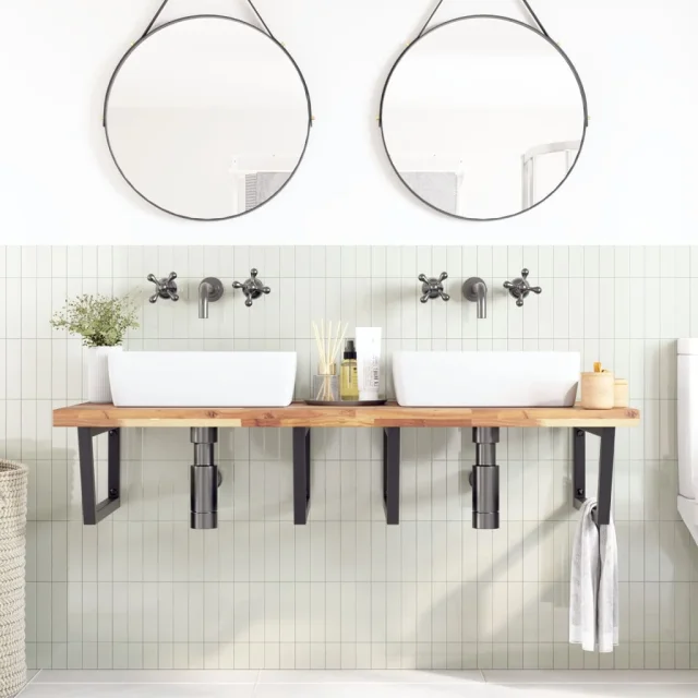 vidaXL Stenska polica za umivalnik jeklo in trden akacijev les