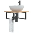 vidaXL Stenska polica za umivalnik jeklo in trden akacijev les