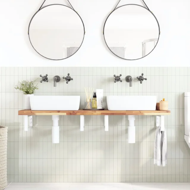 vidaXL Stenska polica za umivalnik jeklo in trden akacijev les
