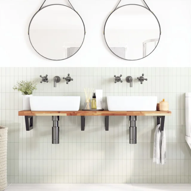 vidaXL Stenska polica za umivalnik jeklo in trden akacijev les