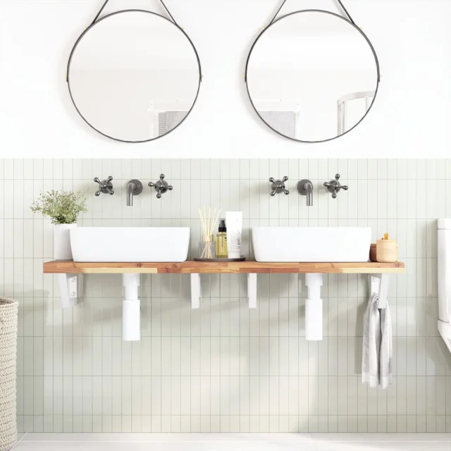 vidaXL Stenska polica za umivalnik jeklo in trden akacijev les