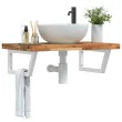 vidaXL Stenska polica za umivalnik jeklo in trden akacijev les