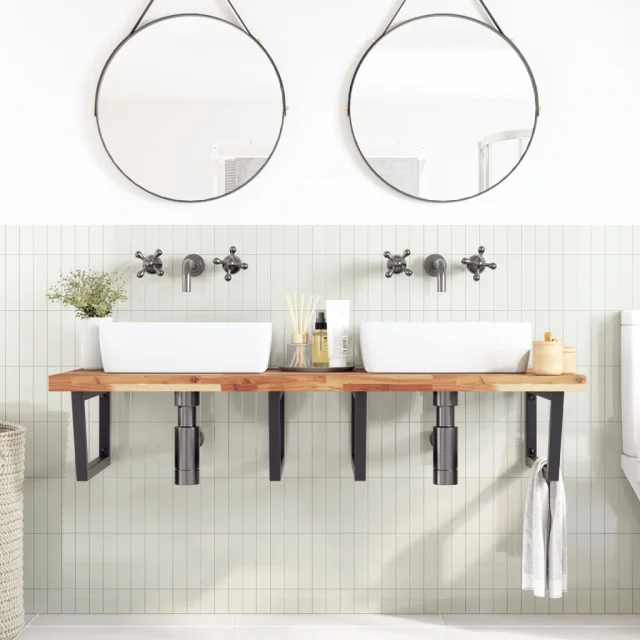 vidaXL Stenska polica za umivalnik jeklo in trden akacijev les