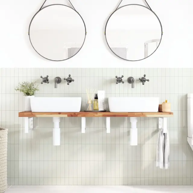 vidaXL Stenska polica za umivalnik jeklo in trden akacijev les