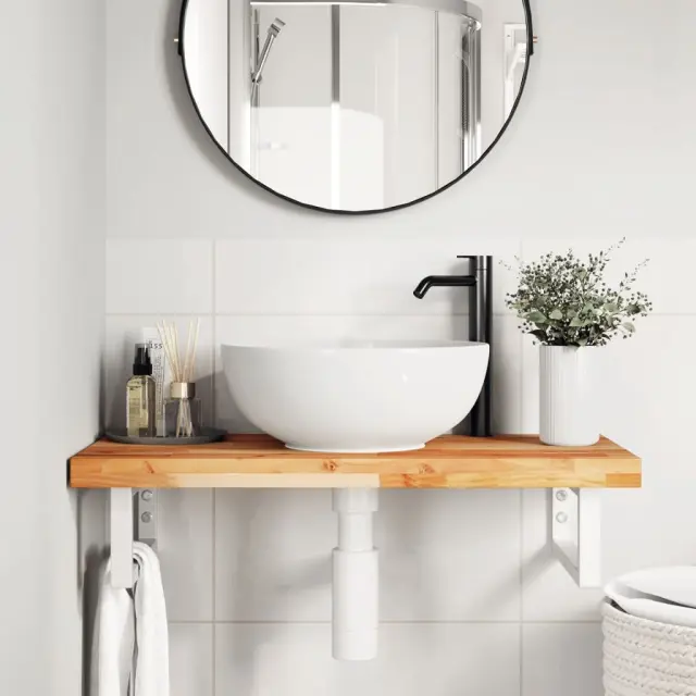 vidaXL Stenska polica za umivalnik jeklo in trden akacijev les