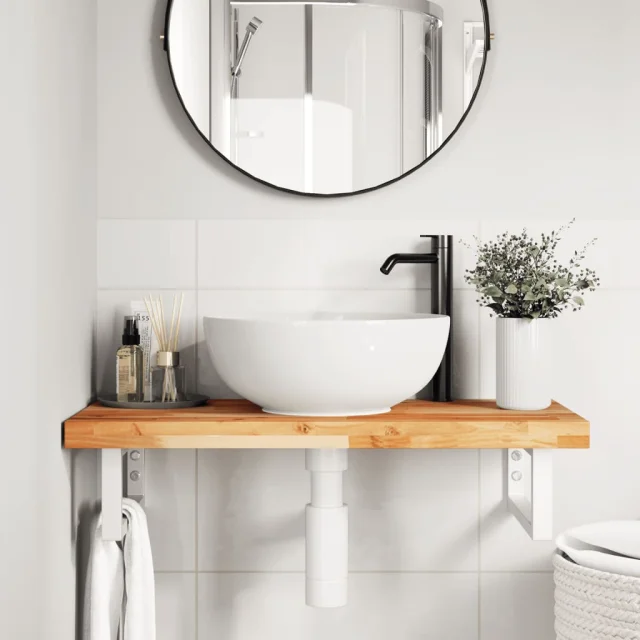 vidaXL Stenska polica za umivalnik jeklo in trden akacijev les