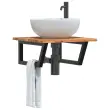 vidaXL Stenska polica za umivalnik jeklo in trden akacijev les