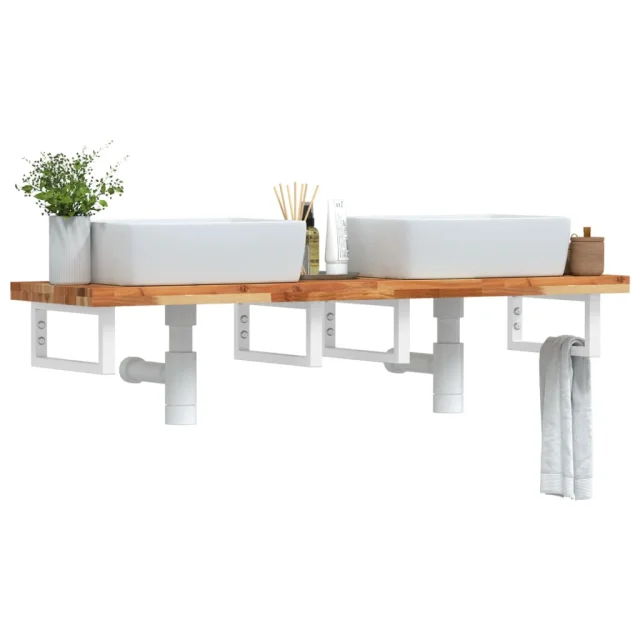vidaXL Stenska polica za umivalnik jeklo in trden akacijev les