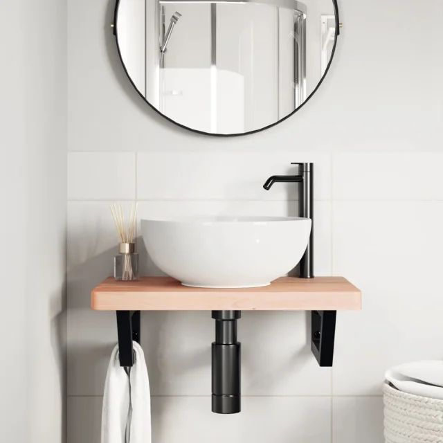 vidaXL Stenska polica za umivalnik jeklo in trdna bukovina